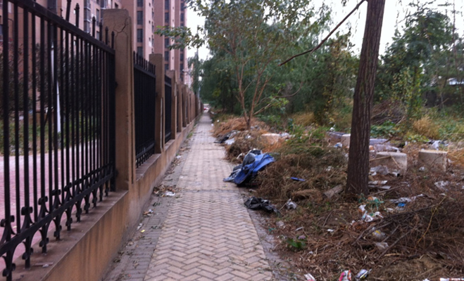 當記者走到小區的北面,發現小區圍欄較矮,很容易翻過柵欄進入到小區,并且沒有看到監控設備,小區后面雜草叢生,由于長時間無人清理,儼然變成了垃圾場。