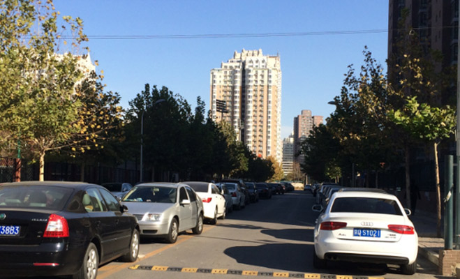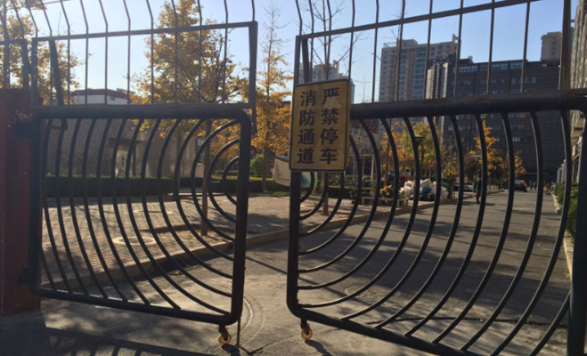 在小區門口的馬路上,記者看到停放眾多的私家車把寬敞的馬路壓縮成兩條可供單輛車行駛的狹窄車道。在小區的正門,有安保人員值班,不允許外部人員隨意進出,不過記者從東邊側門進入,卻無保安詢問,業主也表示“很多回收家電的小販可見直接進入小區,對此反應但物業一直沒有解決”。