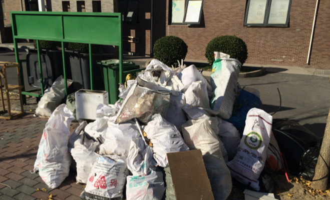 為了業主的方便,小區內建有一些長凳。不過小區的綠化面積較少,垃圾桶邊上也堆滿了建筑垃圾和被丟棄的家具,業主稱“扔在那很長時間了,沒有人清理”。
