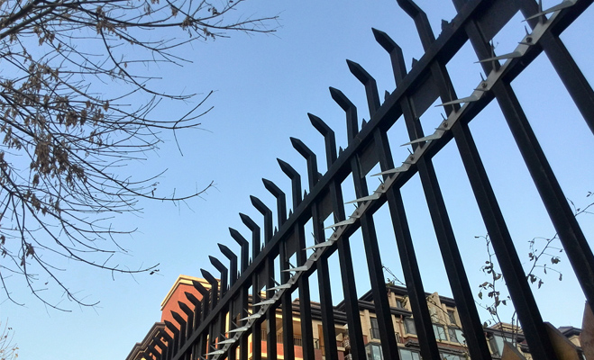 保安對(duì)小區(qū)進(jìn)行24小時(shí)巡視,并配有防暴鋼叉等安防裝備。小區(qū)的圍墻柵欄設(shè)有金屬刺,具有較強(qiáng)的防攀爬功能。小區(qū)實(shí)現(xiàn)了嚴(yán)格的人車分流。