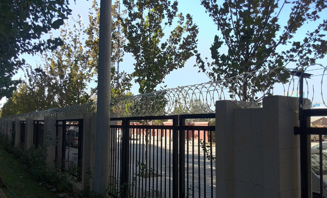 小區(qū)在小區(qū)大門和樓門設(shè)立兩級門禁系統(tǒng),均需刷卡才能進入,小區(qū)圍墻上拉有嶄新的鐵絲網(wǎng)。在小區(qū)內(nèi),記者還不時可以看到正在進行巡視的保安。