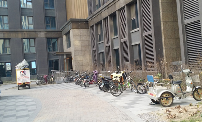 記者在小區里看到快遞車輛可以自由進入小區,并且小區沒有自行車庫,經常可以看到自行車輛亂停的現象。業主對小區內部環境普遍反映較好,只是氣候臨近冬季,因此落葉植物遠沒有夏季般繁茂,但草地依舊青翠。