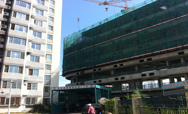 熱心的王大媽也跟記者反映:她所在的3號樓隔斷墻只有薄薄一層,毫無私密性科可言,“我們?nèi)枠桥瘹夤苁?分的,其他樓都是6分的這不是明擺著偷工減料么。”她還反映自家的房屋采光受到了影響“現(xiàn)在新建的樓距離我家不到四十米,你看中午11點都沒有陽光。我們也找過開發(fā)商幾次至今沒有給出答復。”