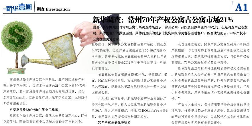 新華調(diào)查:常州70年產(chǎn)權(quán)公寓占公寓市場21%