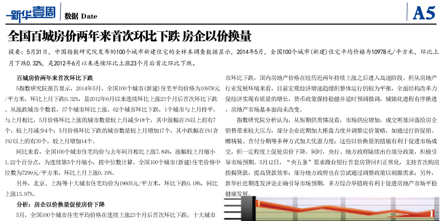 全國百城房價(jià)兩年來首次環(huán)比下跌
