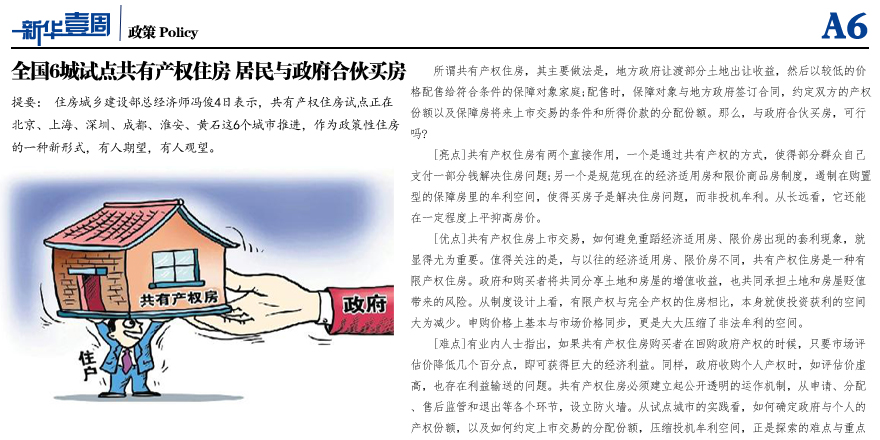 全國6城試點(diǎn)共有產(chǎn)權(quán)住房