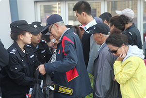 入場前市民接受工作人員安檢 |