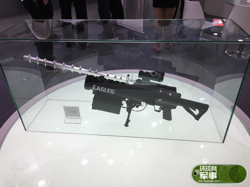 ????第八屆中國國際警用裝備博覽會于2016年5月17日至20日在北京國家會議中心舉行,各類警用裝備齊聚亮相。在一家展商的展臺上,擺著一具無人機干擾器。從外觀上看,這款裝備有點像電鋸。