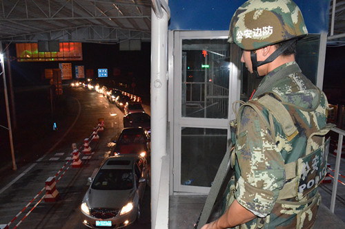 ????廣西楠木山邊境檢查站,每過一輛車,檢查員蔣煥彬都要使勁推動重約100斤的防暴鐵馬,將檢查站的入口擋住,直到例行檢查未發現異常后,再將鐵馬拉開放行。這個動作他在8小時執勤時間內基本上要重復幾百次。