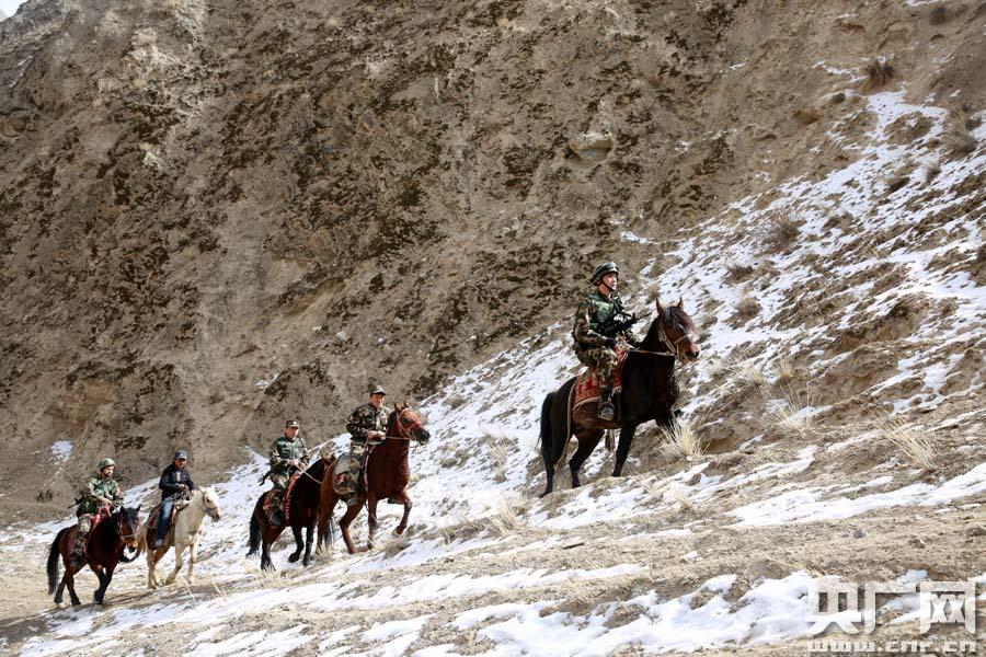 邊防官兵與群眾護邊員在高原邊境前沿巡邏