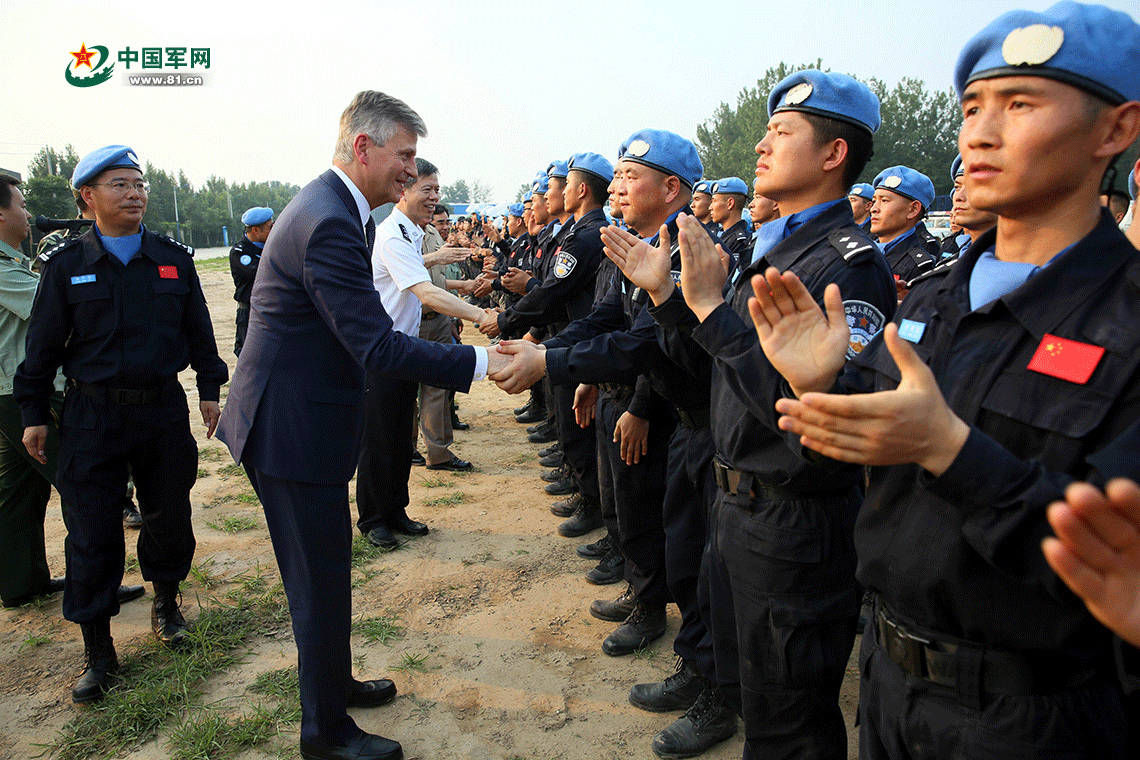 ????6月30日下午,聯合國負責維和行動事務的副秘書長拉克魯瓦視察中國維和警察培訓中心,檢閱了正在那里參加集訓的公安部常備維和警隊培訓班,現場觀摩了實戰科目演練。他對中國常備維和警隊的優異表現給予高度贊賞。
