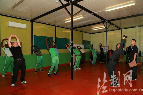 ????“左手抓對方拇指向外旋,右手托對方肘部,轉(zhuǎn)跨、擰腰……”警務(wù)實戰(zhàn)教官王變闖一邊神情自若地講解著動作要領(lǐng),一邊干脆利落地完成一個精彩的“控腕翻肘”解脫動作演示,配手應(yīng)聲倒地“就范”。“Wow……Good!”伴隨著一陣驚嘆,現(xiàn)場膚色各異的國際“學員”紛紛向中國教官豎起大拇指,報以雷鳴般的掌聲。近日,中國第五支駐利比里亞維和警察防暴隊警務(wù)實戰(zhàn)培訓班在任務(wù)區(qū)“驚艷”亮相。