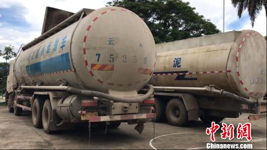 圖為兩輛改裝的水泥罐車?!《沤饎P 攝