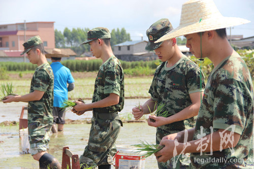 ????原標題:貴港邊檢站官兵"金秋助農插秧"主題黨日活動開到田間地頭