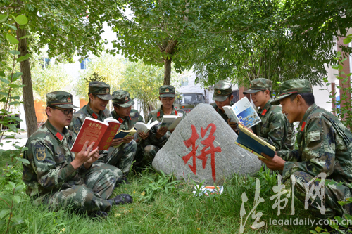 ????正是阿里普蘭的夏季,筆者迎著夏末舒爽的暖風走進了西藏邊防總隊普蘭邊檢站,立即被這里濃濃的讀書氛圍所吸引——營區里懸掛著“知識無涯,學無止境”、“發奮識遍天下字,立志讀盡人間書”的標語,讀書室內擺滿了各類學科的書籍,墻壁上貼滿了各種學習心得體會,只見官兵們三三兩兩的聚在一起,手捧書籍,交流著學習體會……