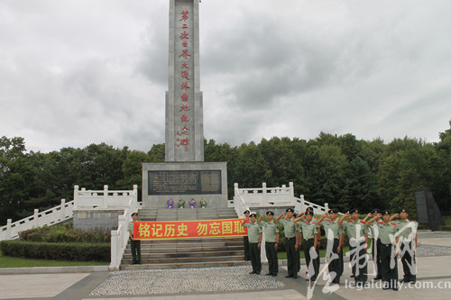 圖為邊防官兵在紀念碑前進行“銘記歷史 勿忘國恥”宣誓紀念活動
