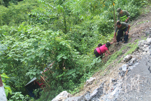????獲悉情況后,該所立即向百南鄉衛生院通報情況,并組織官兵趕赴現場施救。邊防官兵在現場發現一輛三輪車側翻在半山坡,山坡下是10多米深的河流。“好在有樹攔住,要不然后果不敢想象?!眹^群眾李師傅說道。
