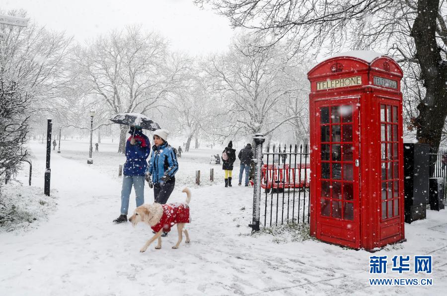 1月24日,人們?cè)谟?guó)倫敦的大雪中行走。當(dāng)日,英國(guó)倫敦迎來降雪。新華社記者韓巖攝