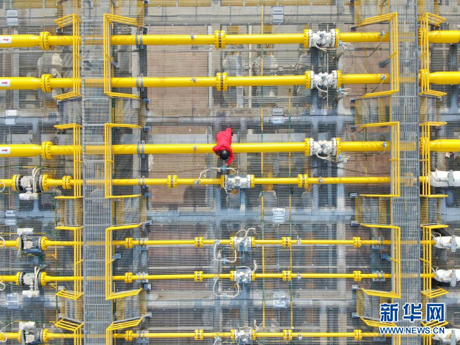 2月3日,在遼河油田儲氣庫公司雷61作業區,來自吉林遼源的副區長韓鵬在作業區巡檢。今年他留在當地過年(無人機照片)。