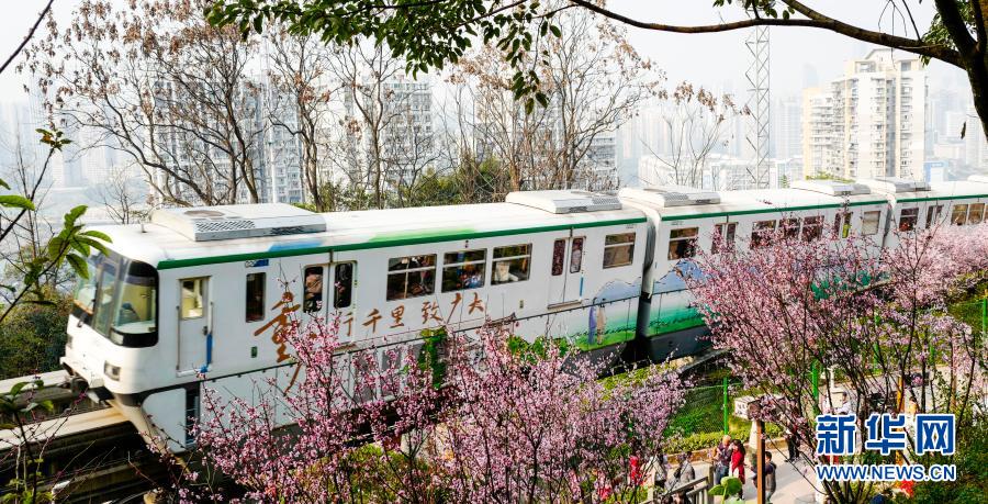 初春時(shí)節(jié),重慶氣溫逐漸回暖,暖陽里的山城春意盎然。在重慶軌道交通2號線佛圖關(guān)段,山城步道上的梅花簇簇綻放,單軌列車穿越花海,組成一幅賞心悅目的獨(dú)特城市景觀。