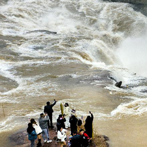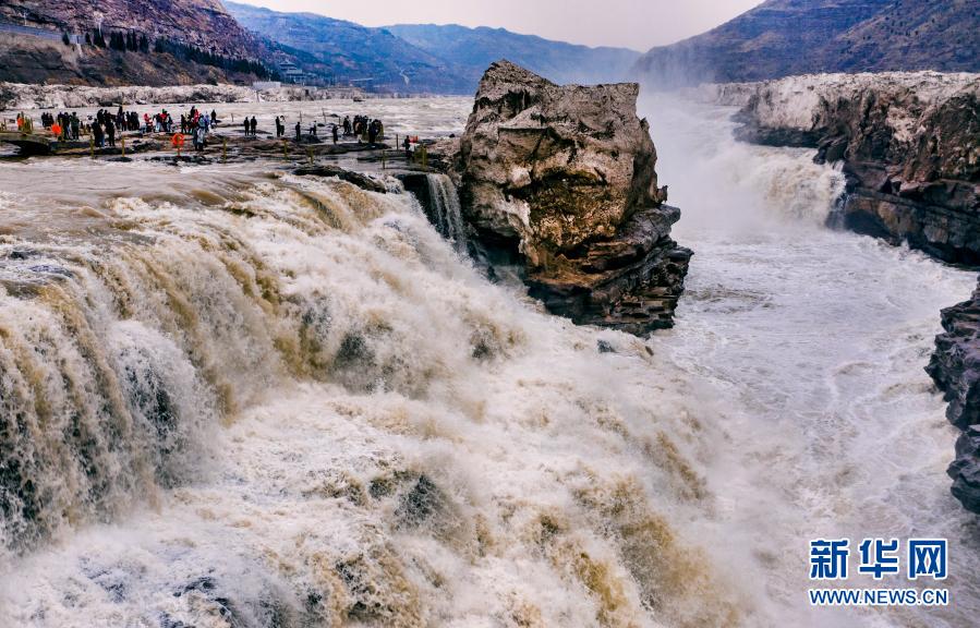 從2月24日起,陜西壺口瀑布景區恢復對外開放。隨著氣溫回升,黃河上游冰雪消融,水量增大,壺口瀑布的主瀑布恢復了往日奔騰咆哮的氣勢,黃河之水奔騰而下,形成壯觀瀑布群。