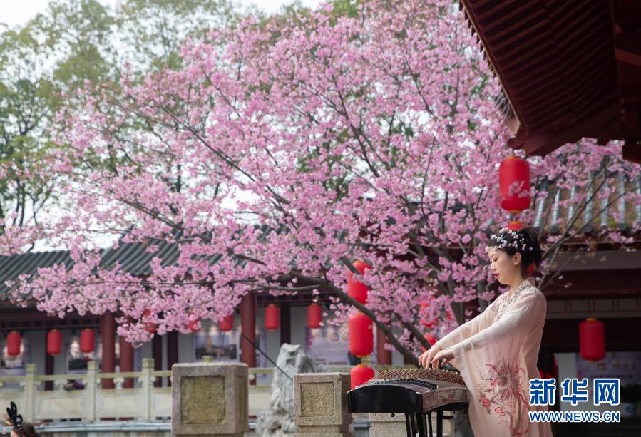 2月27日,演員在武漢東湖櫻花園表演節目。