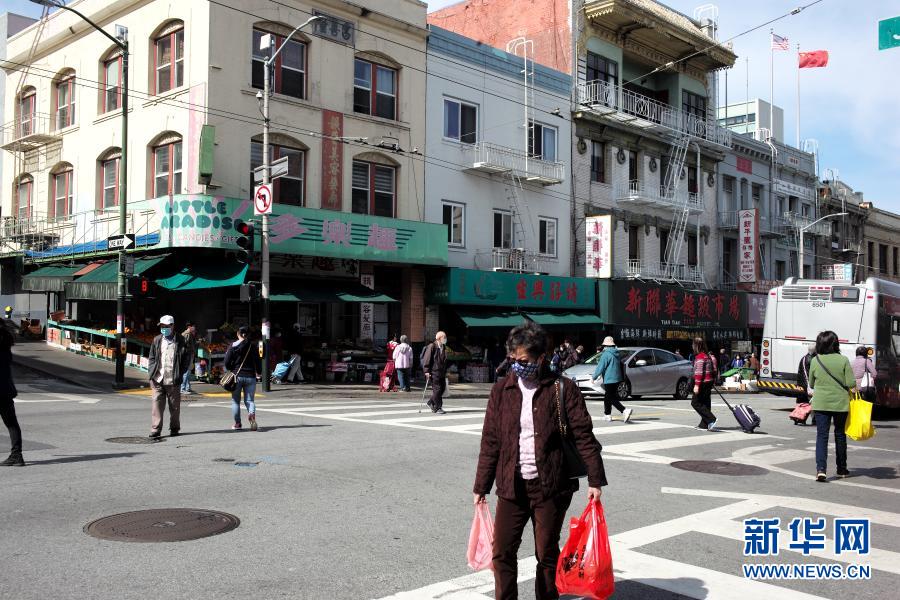 3月3日,人們走在美國加利福尼亞州舊金山唐人街街頭。新華社記者 吳曉凌 攝