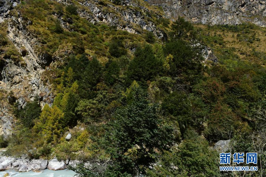 這是西藏定日縣絨轄溝內一片含有密葉紅豆杉的植物群落(2020年10月29日攝)。
