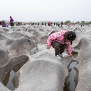 冬春枯水期,四川省涪江江油市青蓮鎮(zhèn)中河村段,約 5000 余平方米的石灘露出水面。石灘凹凸不平,好似起伏的山巒,每天吸引眾多游人前來(lái)游玩。據(jù)專(zhuān)家解釋?zhuān)@種壺穴地貌景觀是由涪江河床的基巖經(jīng)水中裹挾的礫石長(zhǎng)時(shí)間沖刷、磨蝕而成。