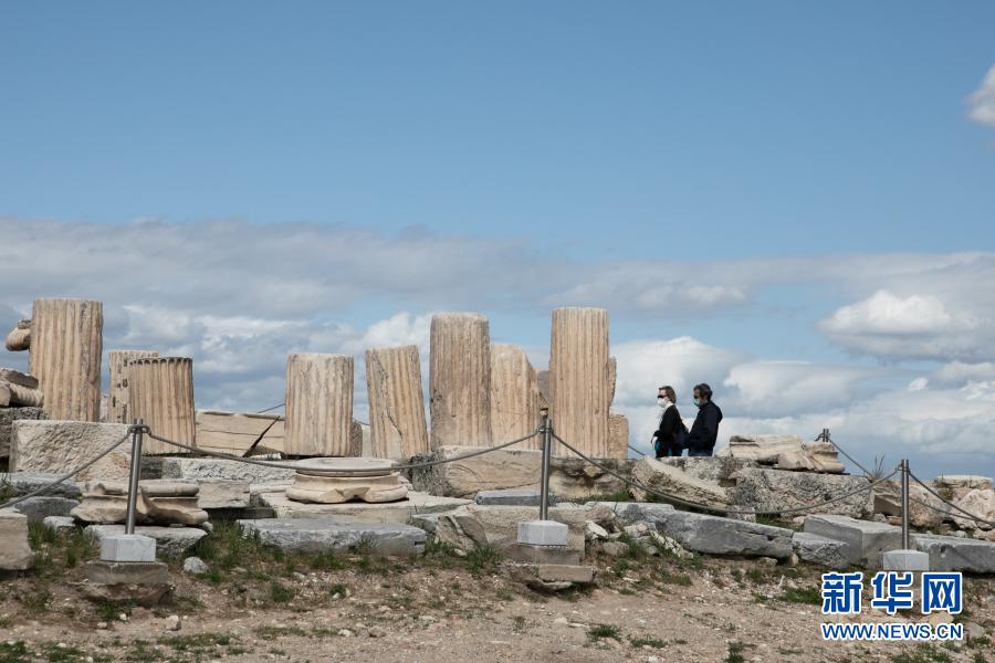 3月22日,游客游覽希臘雅典衛(wèi)城。希臘露天考古遺跡22日起恢復開放。游客需遵守保持社交距離和佩戴口罩等防疫規(guī)定。新華社發(fā)(萊夫特里斯·帕察里斯攝)