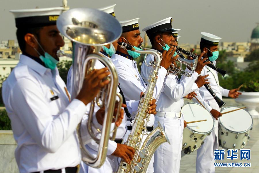 3月23日,樂手在位于巴基斯坦卡拉奇的國父真納墓參加“巴基斯坦日”紀念活動。