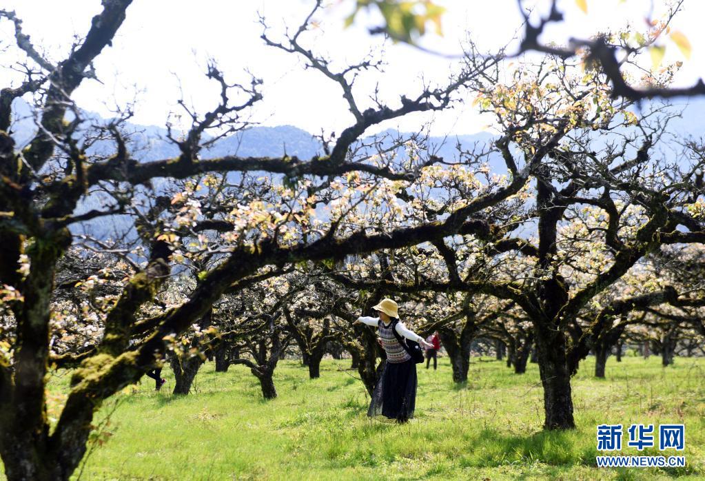 3月26日,游客在福建省南平市光澤縣李坊鄉(xiāng)管密村的梨花園里踏青賞花。