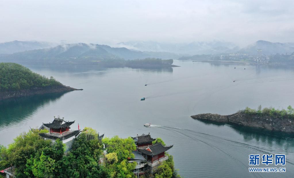 秦巴山區(qū)的陜西省安康市漢濱區(qū)流水鎮(zhèn),一面依山三面環(huán)水。山水之間,鄉(xiāng)村農(nóng)家,與滿目青山中的茶園果園相映成趣,構(gòu)成一幅清新悠然的田園畫(huà)卷。湖邊沿岸點(diǎn)綴的多處名勝古跡,更為小鎮(zhèn)增添了文化韻味。