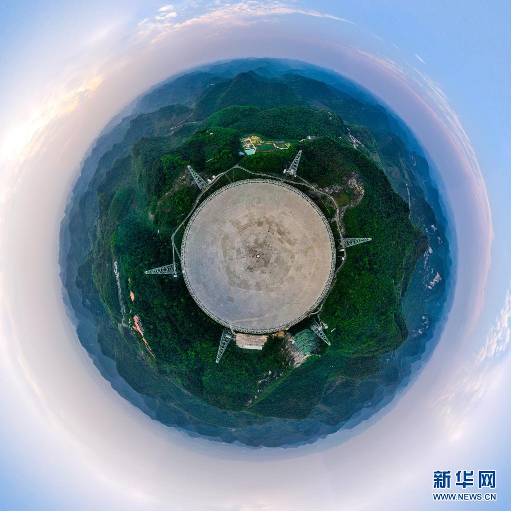 在貴州省平塘縣,被譽為“中國天眼”的500米口徑球面射電望遠鏡(FAST)在群山中仰望星空,探求著宇宙奧秘。