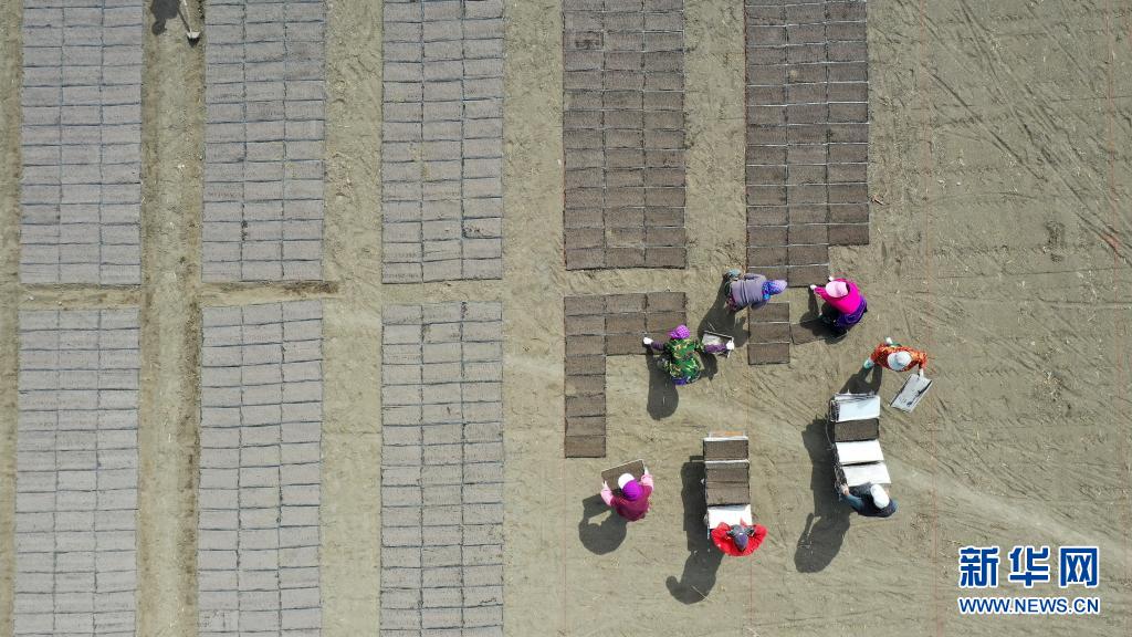4月3日,唐山蘆臺經濟開發(fā)區(qū)四分場的農民在稻田地里碼放育苗盤(無人機照片)。春耕時節(jié),河北省唐山市蘆臺經濟開發(fā)區(qū)農民搶抓農時,開展稻田整地、水稻育秧等工作。新華社發(fā)(董軍 攝)