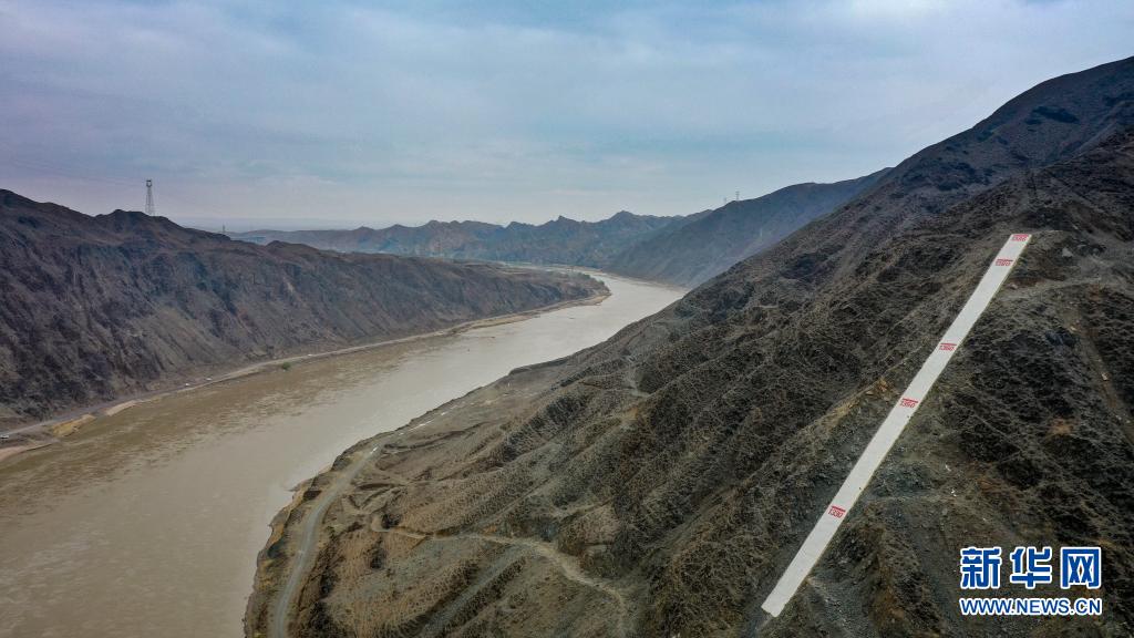 這是位于寧夏中衛(wèi)市黃河黑山峽河段的水位標(biāo)記(4月3日攝,無人機照片)。