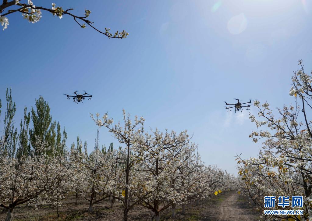 新華全媒+丨新疆:梨農授粉用上無人機