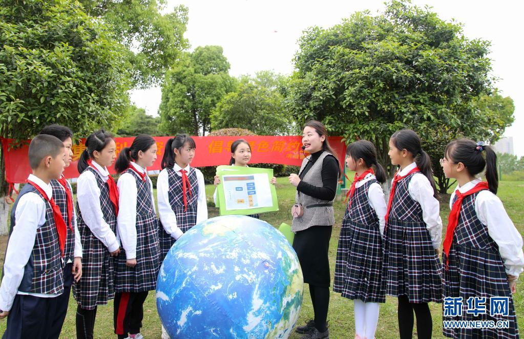 4月19日,老師在 “森林小課堂”上給學生們講述地球的板塊構造。