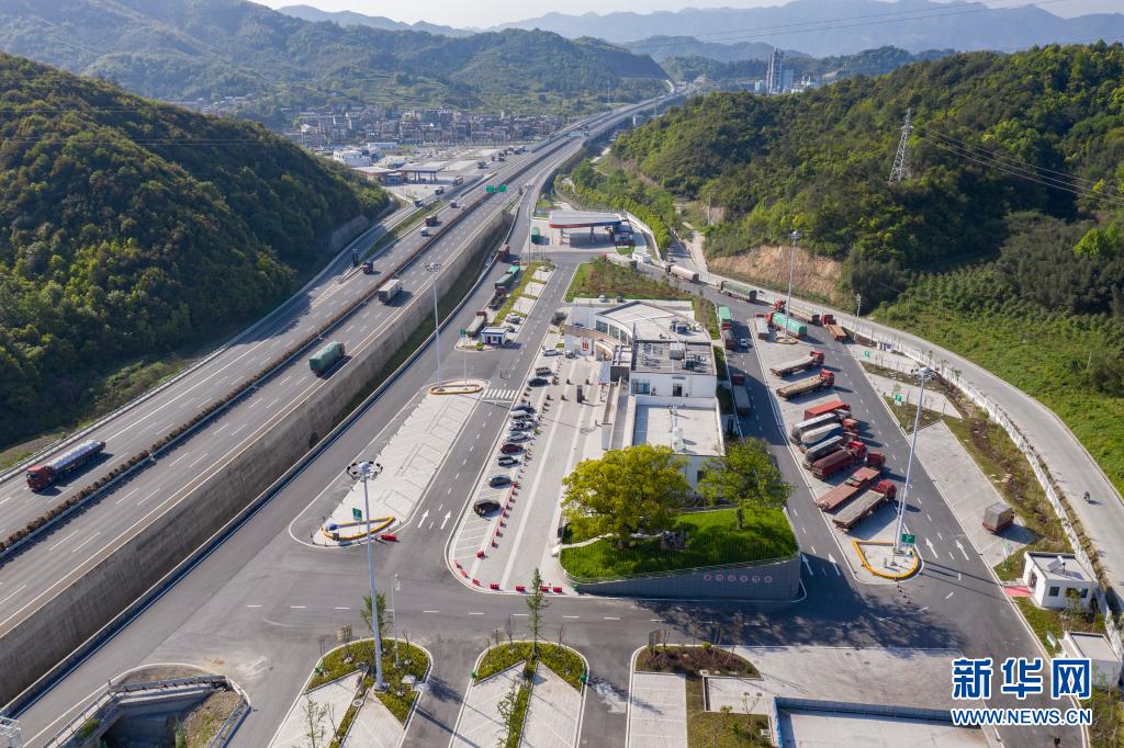 4月19日拍攝的杭州第二繞城高速西復線次塢服務區(無人機照片)。