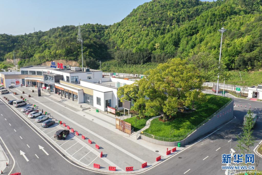 杭州第二繞城高速西復(fù)線次塢服務(wù)區(qū)有3棵樹齡在100年以上的古樹。服務(wù)區(qū)在建設(shè)過程中,將古樹保護(hù)起來,現(xiàn)已成為一道特色景觀。新華社發(fā)(郭斌 攝)