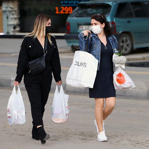 4月29日禁令實施前,兩名戴口罩的女子在土耳其安卡拉上街購物。