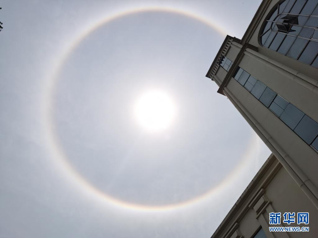 5月1日,云南昆明出現日暈景觀。