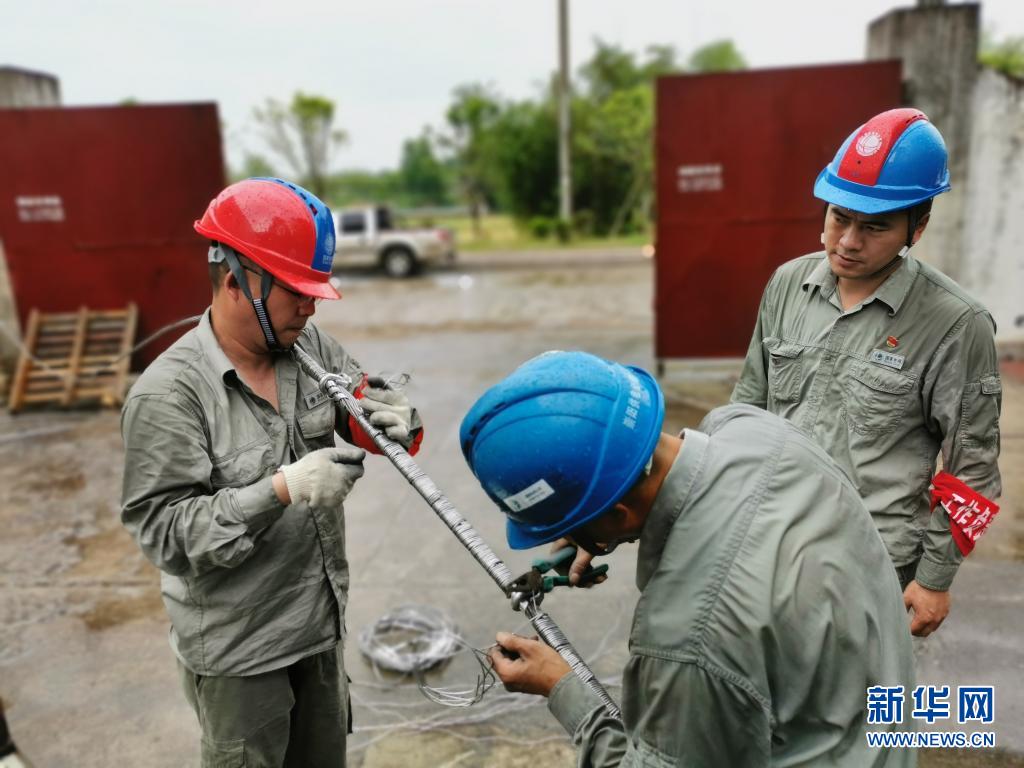 “跑山電工”黨員服務隊隊員在進行搶修(5月3日攝)。