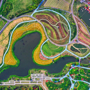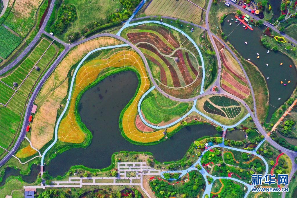 這是5月2日拍攝的浙江省杭州市余杭區徑山鎮的千畝繽紛花海(無人機照片)。