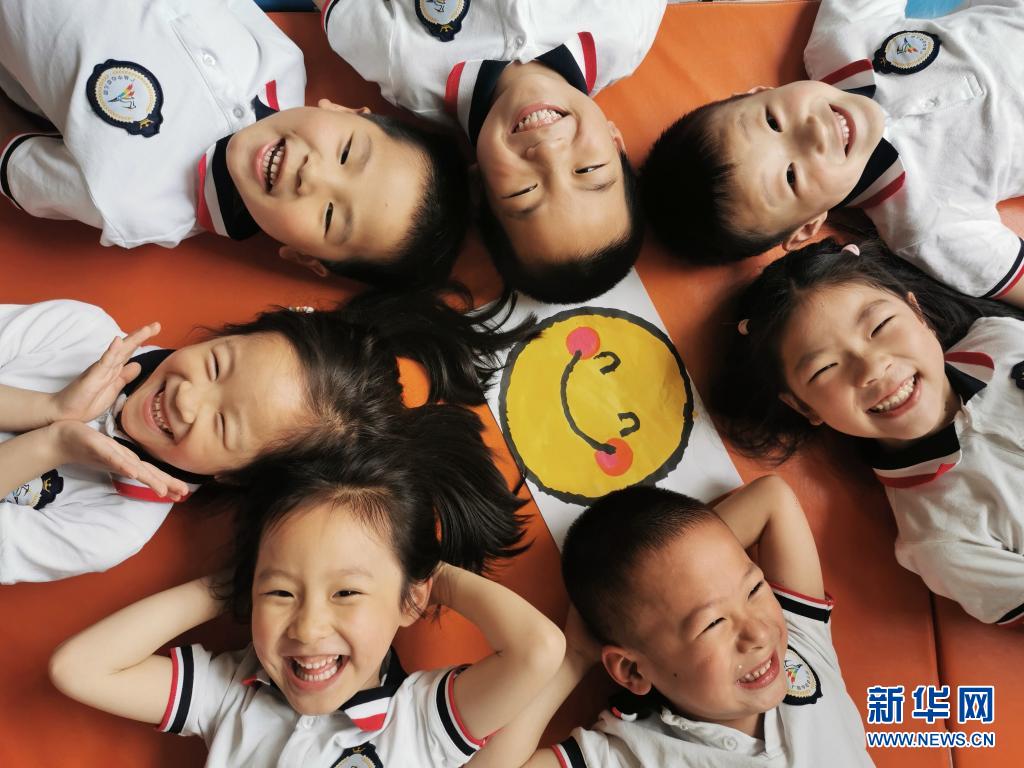 5月7日,江蘇省無錫市梁溪區廣益中心幼兒園的小朋友在展示笑臉。世界精神衛生組織將每年的5月8日定為“世界微笑日”,希望通過微笑促進人類身心健康,增進社會和諧。新華社發(朱吉鵬 攝)