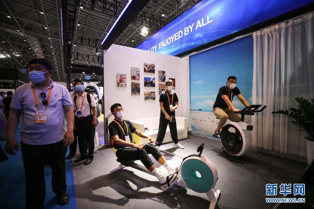首屆中國國際消費品博覽會在海南省海口市舉行,其中包括旅居生活和服務消費等展區。參展商帶來的運動器械等產品吸引了諸多觀眾現場體驗、咨詢。