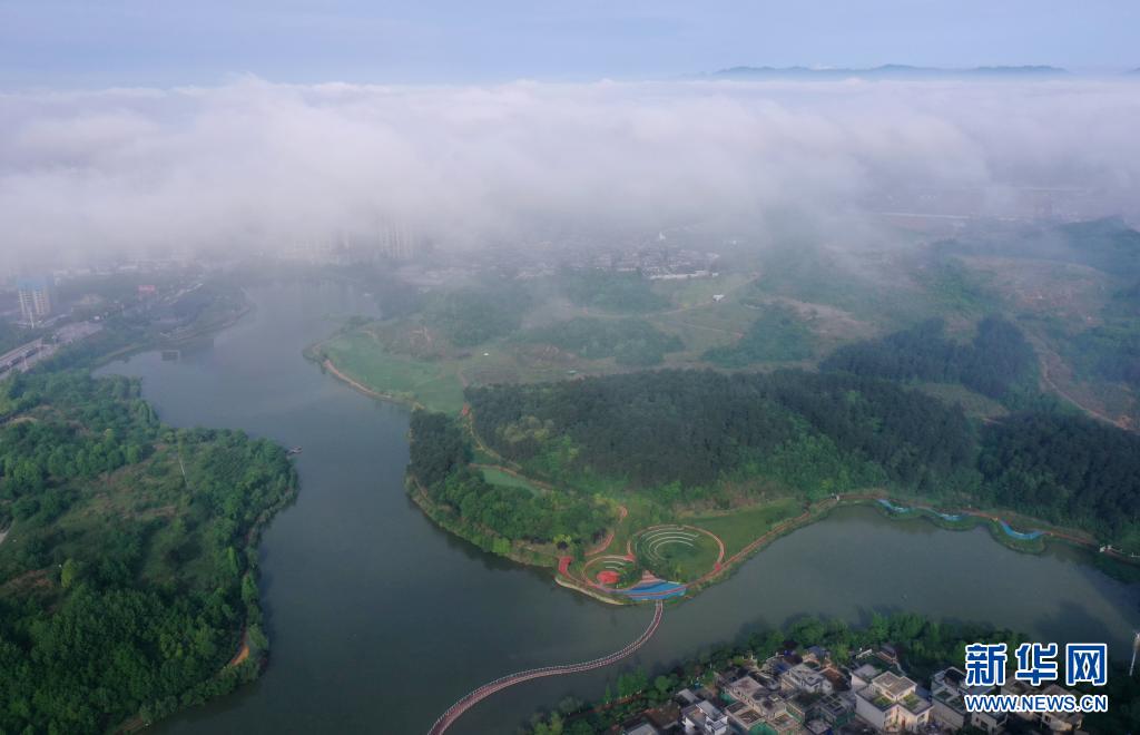5月8日,貴陽市觀山湖區閱山湖公園景色怡人(無人機照片)。