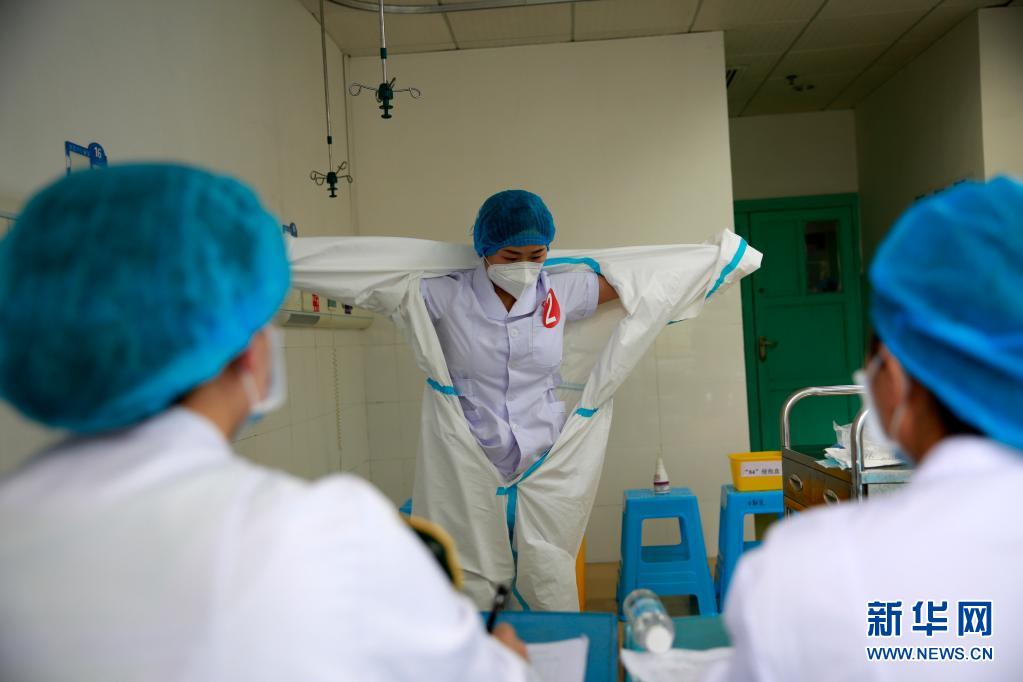 5月11日,貴州省黔東南苗族侗族自治州劍河縣人民醫院的護士在進行護理技能操作競賽。