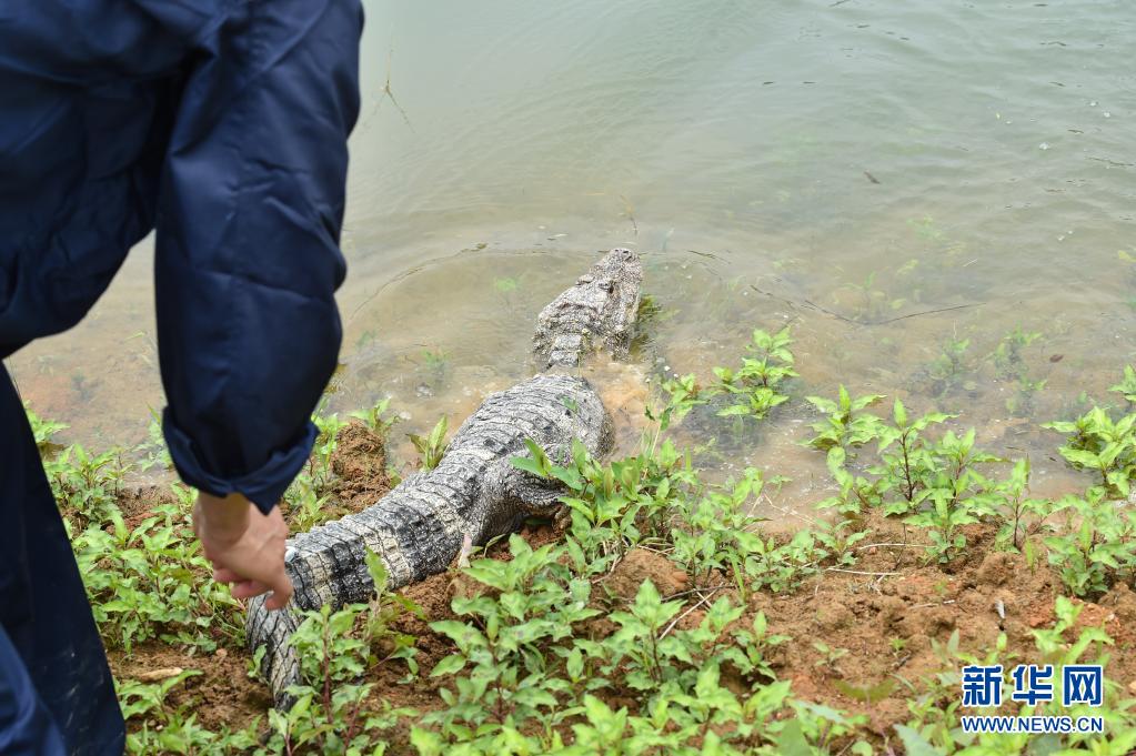 5月13日,工作人員放歸揚子鱷。
