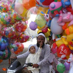 5月13日,人們在巴基斯坦南部城市卡拉奇慶祝開齋節。新華社發